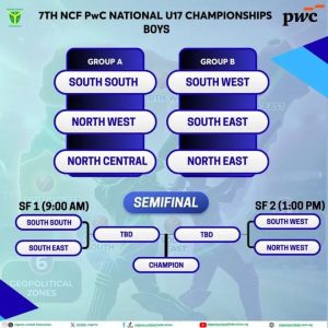 The battle for places in the finals of the NCF PwC National U17 Championships intensified on Saturday as the competition entered its decisive semi-final stage, with teams from Nigeria’s six geopolitical zones battling for a place in the championship match.