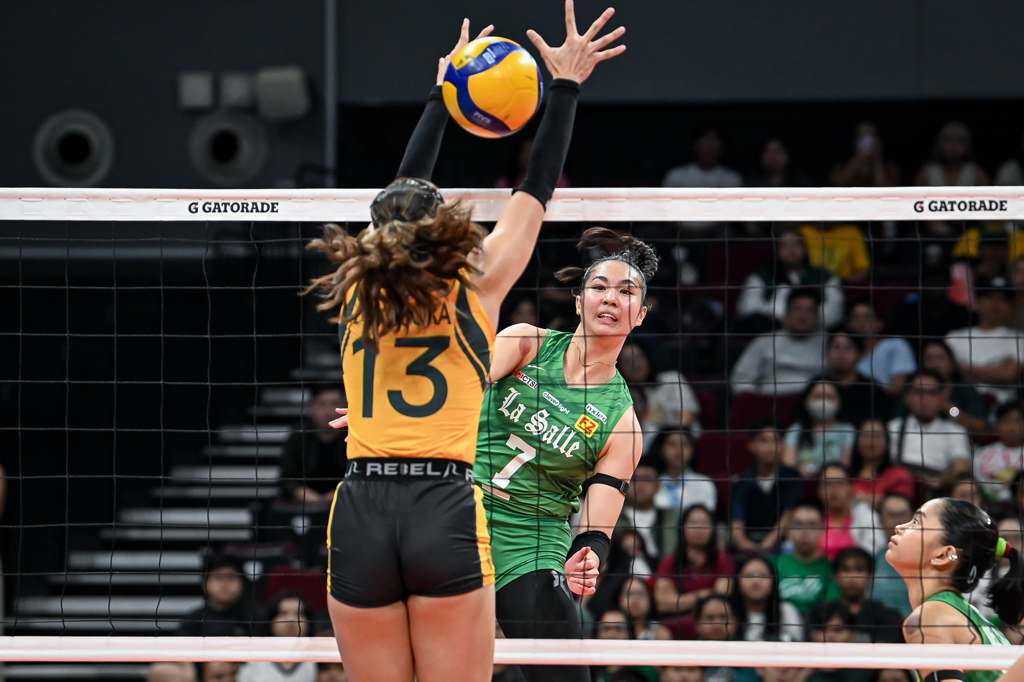 Following her 23-point outing against the Lady Tamaraws, the 21-year-old continued her fine form against the Golden Tigresses, scoring 21 points—19 of which came in the last two sets—on 17 spikes and four blocks.